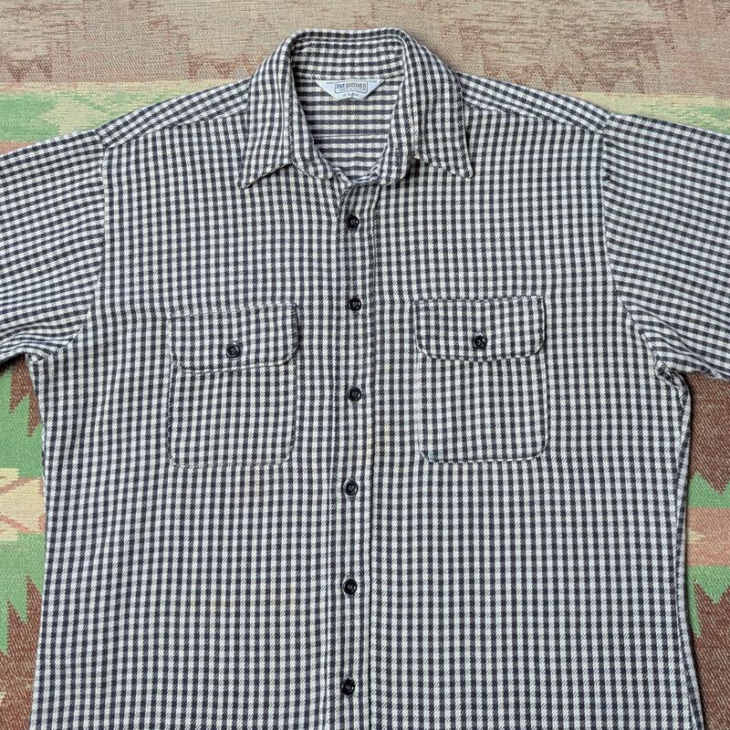 1980s~ FIVE BROTHER Flannel Shirt (L) White/Black Houndstooth