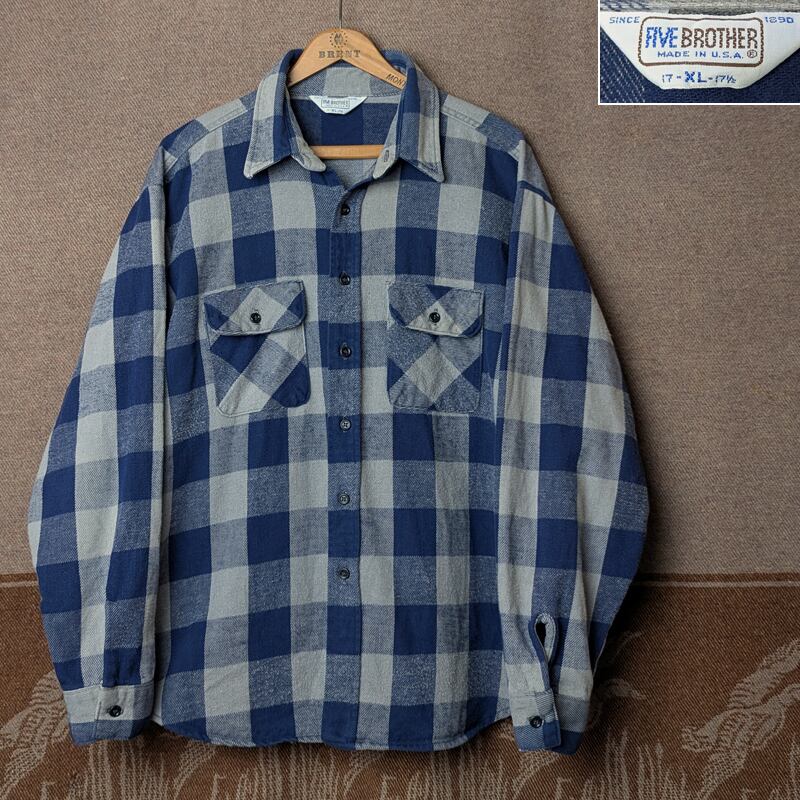 1980s~ FIVE BROTHER Flannel Shirt NAVY/GRAY