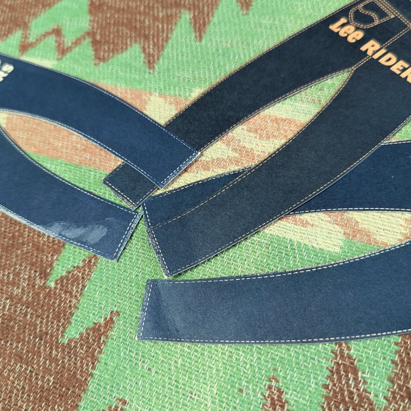 ショップカード・しおりのようなものでしょうか、紙製のジーンズ型、やや大きめサイズです。裏面に販売店のスタンプが押してあります。