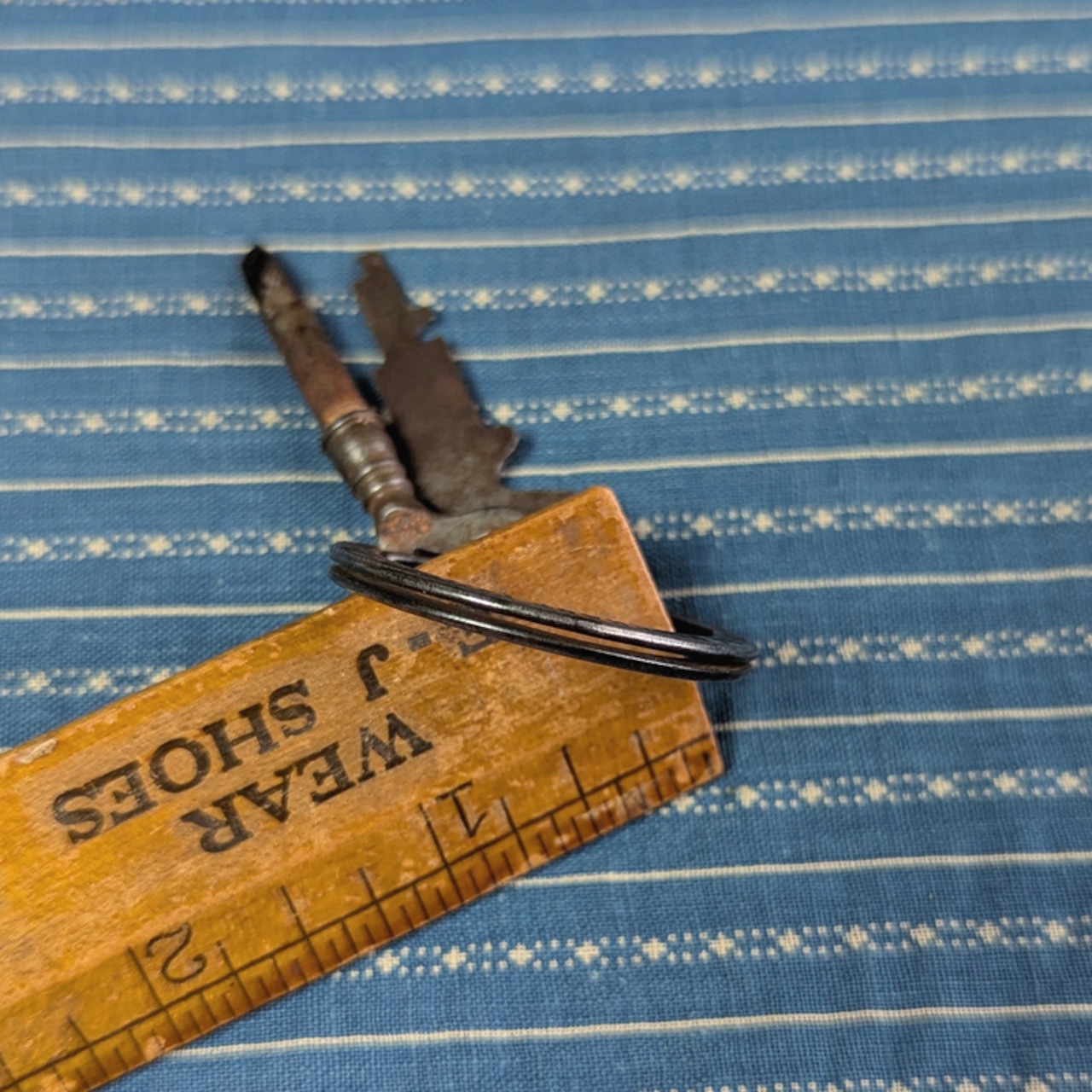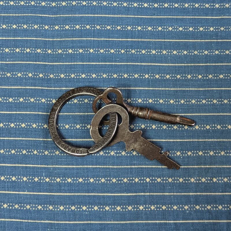 ヴィンテージ古着好きにはうれしい衣料品関係の企業のものです。古いカギが付属していましたのでそのままお付けします。