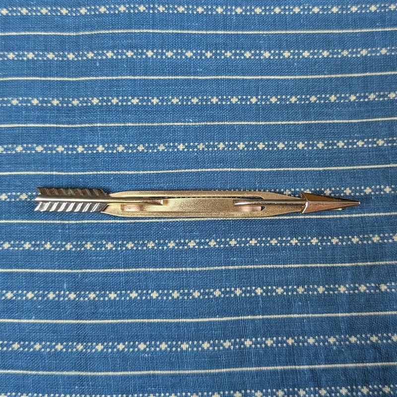 矢モチーフ、中央が開いていてネクタイを貫通しているように見えるデザインです。