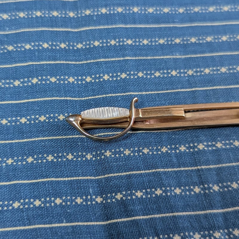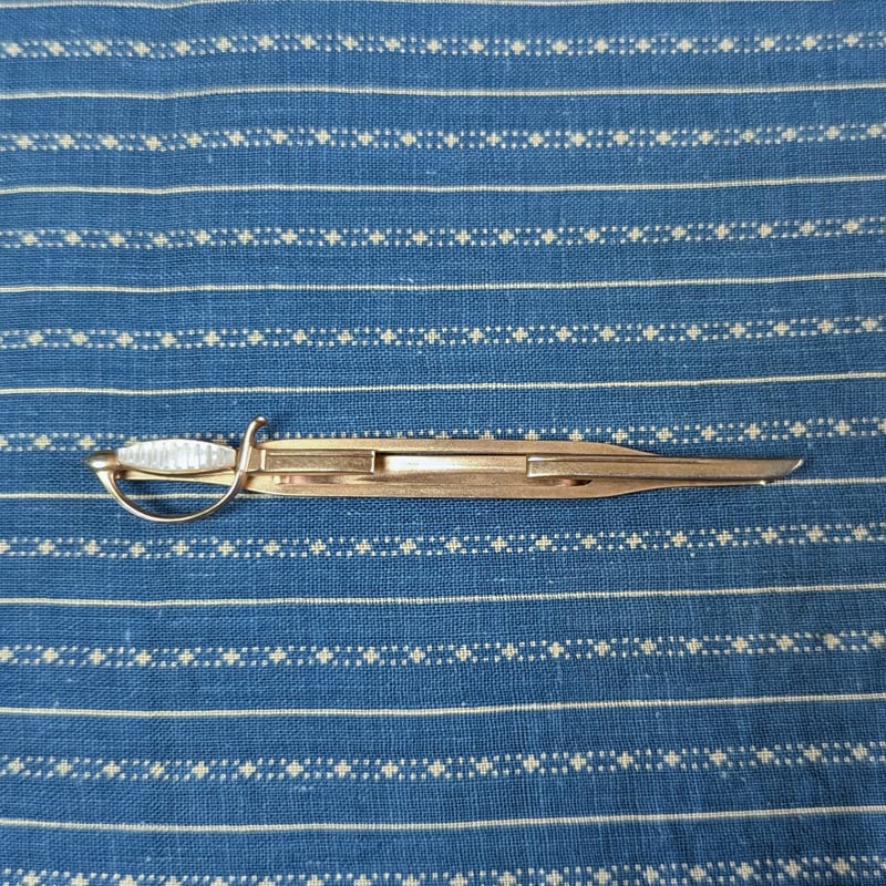 剣モチーフ、中央が開いていてネクタイを貫通しているように見えるデザインです。