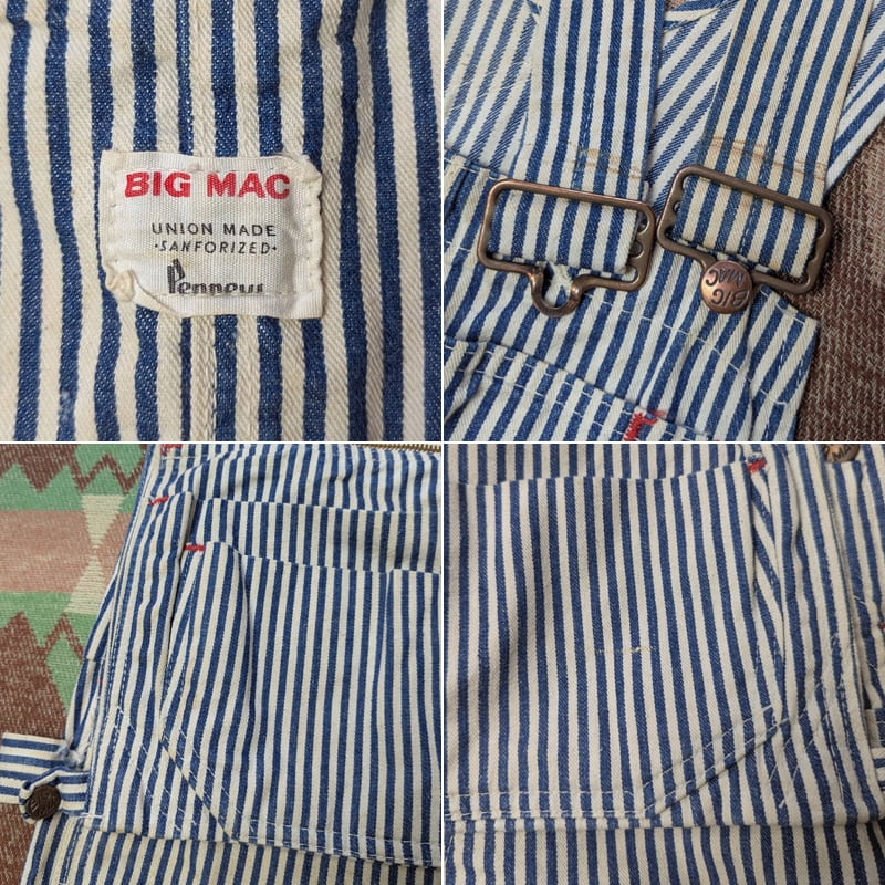 60s~ BIG MAC Hickory Stripe Overalls w/Apron Pocket (W36)