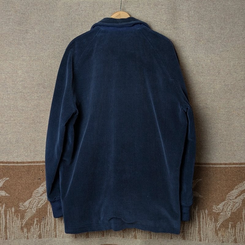 ぼんやりとしたシミ汚れやくすみ・若干の擦れ・ライニング縮みによる裾たるみ・一番下ボタン擦れキズなど見られますが、特別気になるようなシミ汚れやダメージのない良好なコンディションです。