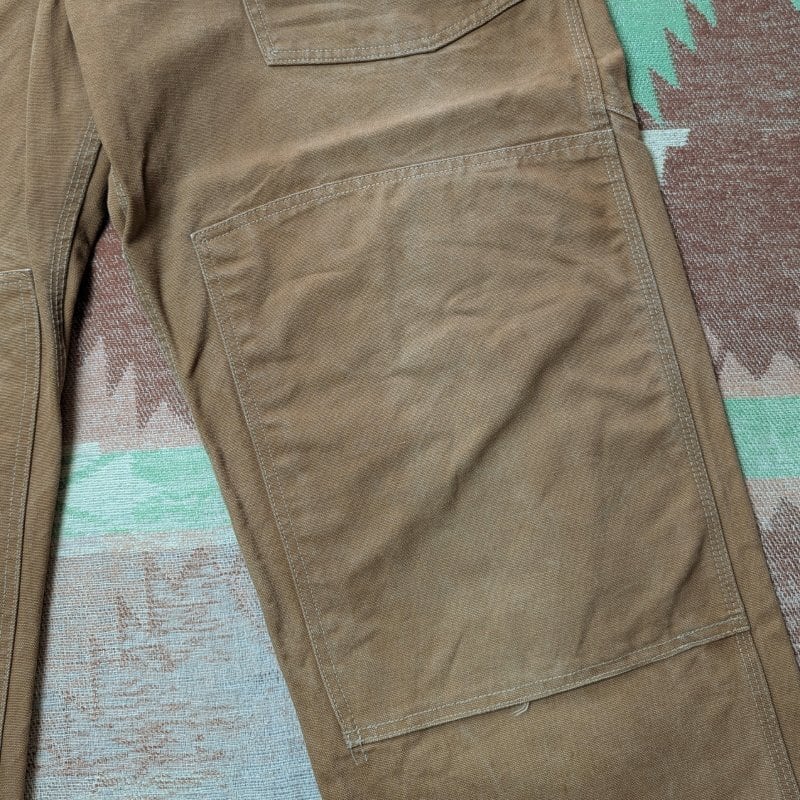 この年代までの古いディテールを残したセパレート ビブポケット、ダック生地ならではの多数のリベット使いも良ディテールとなっています。