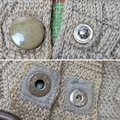 スナップは右が上になる合わせで首まわりは細いので女性あるいは子供用サイズの可能性はありますが、当時の製品資料では男性も着用しています。スナップを使用しない、留め方を工夫する、など男女兼用で大人でも使用可能な製品と思います。