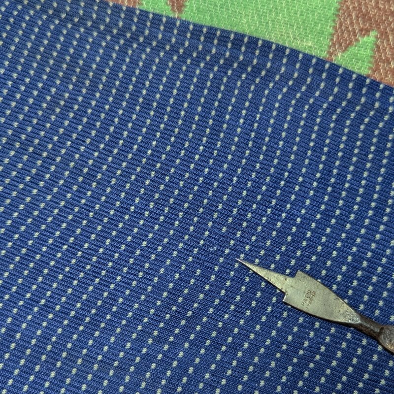 フライス編みのように伸縮性がある生地、ネイビーに白の織り柄。