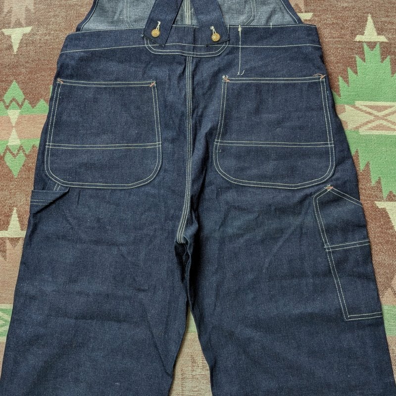 1940s~ STRONG HOLD Low-Back Denim Overalls / DEAD-STOCK