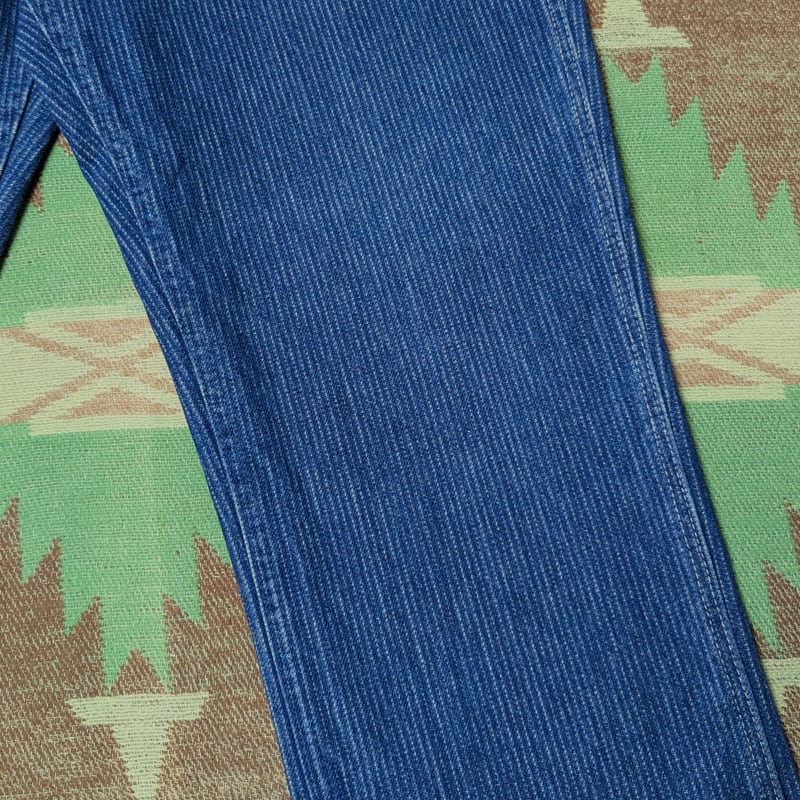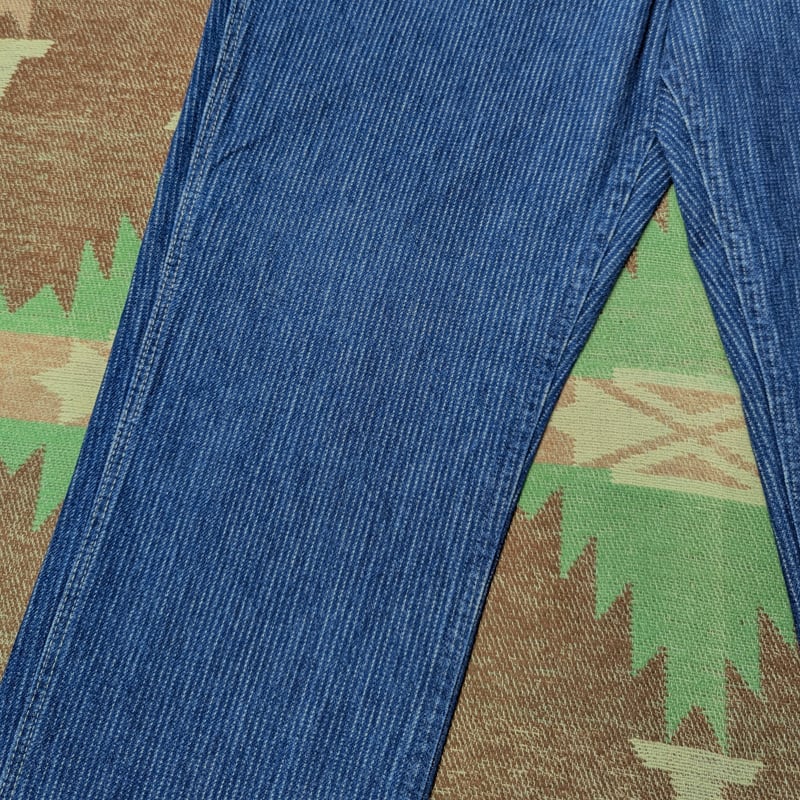 リーバイスでも見られるザクザクとした織りのストライプ生地を使用した、Leeの定番200ジーンズです。