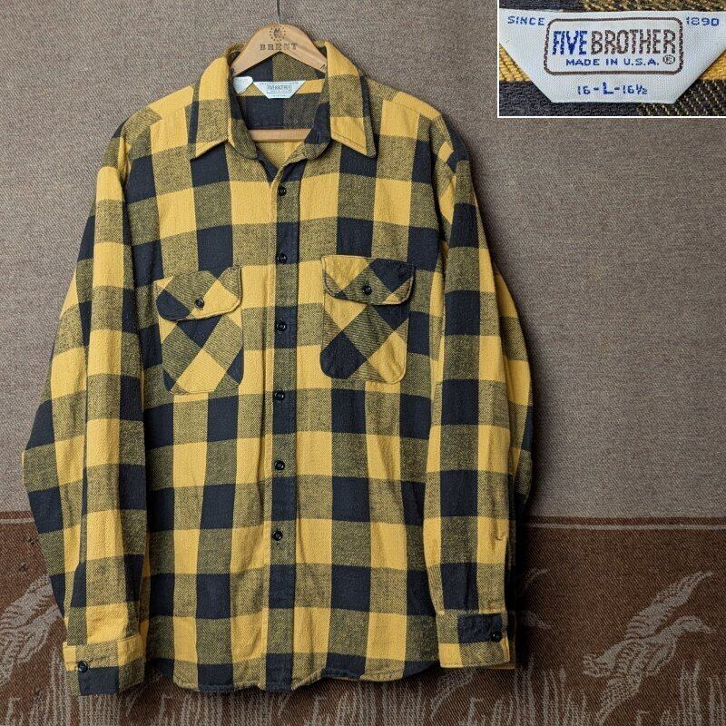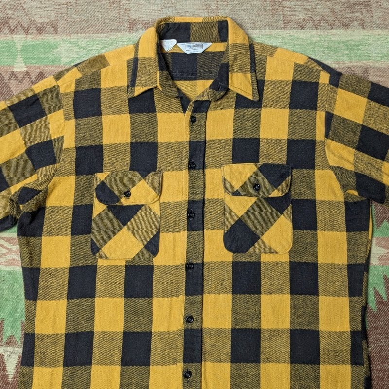 80s~ FIVE BROTHER Flannel Shirt (L) YELLOW/BLACK