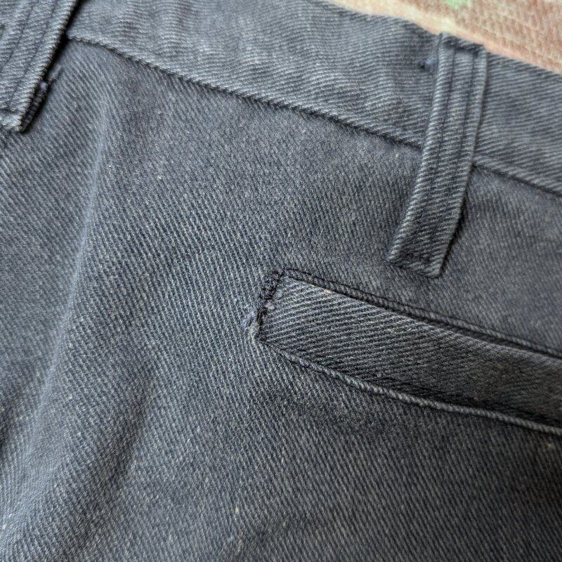 ポケットの端に若干ほつれがありますが、着用やポケットの使用には問題ありません。わずかな色あせやシミ汚れは見られますが、しっかりとした生地感の良い状態です。