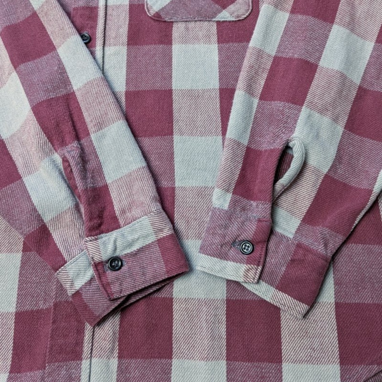 背中に色抜けのような箇所、ヘビーネル特有といえる全体的な毛羽立ちは多少見られますが、特にダメージのない良い状態です。