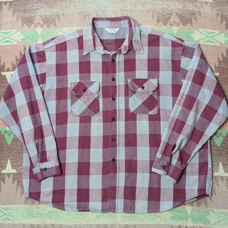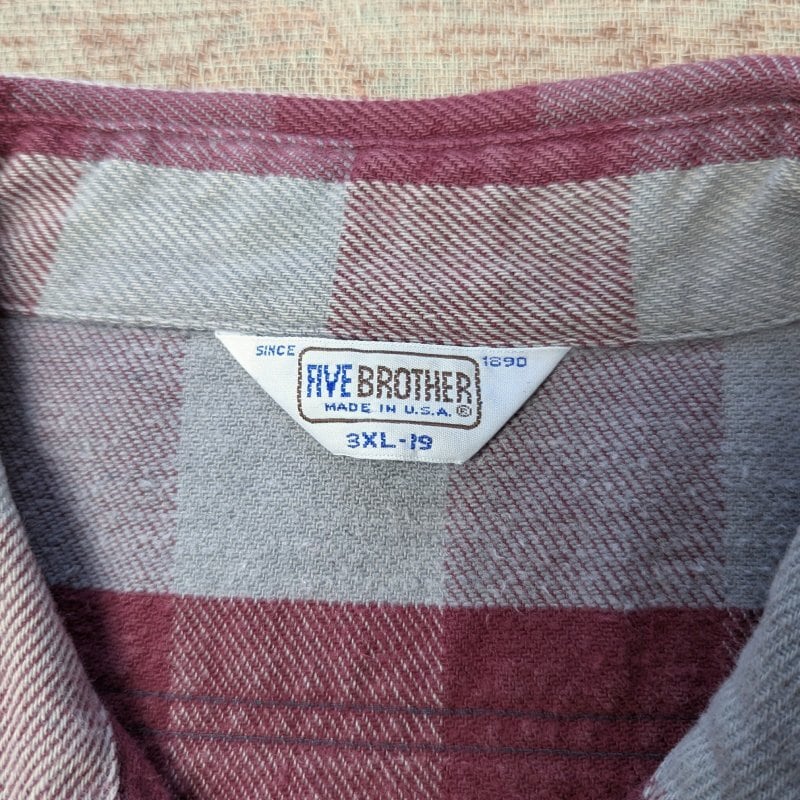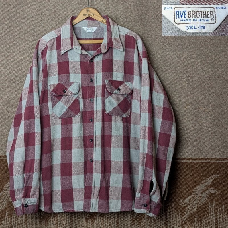 80s~ FIVE BROTHER Flannel Shirt (3XL) BURGUNDY/GRAY