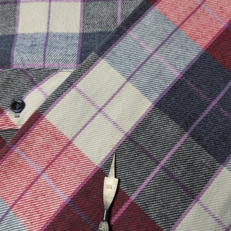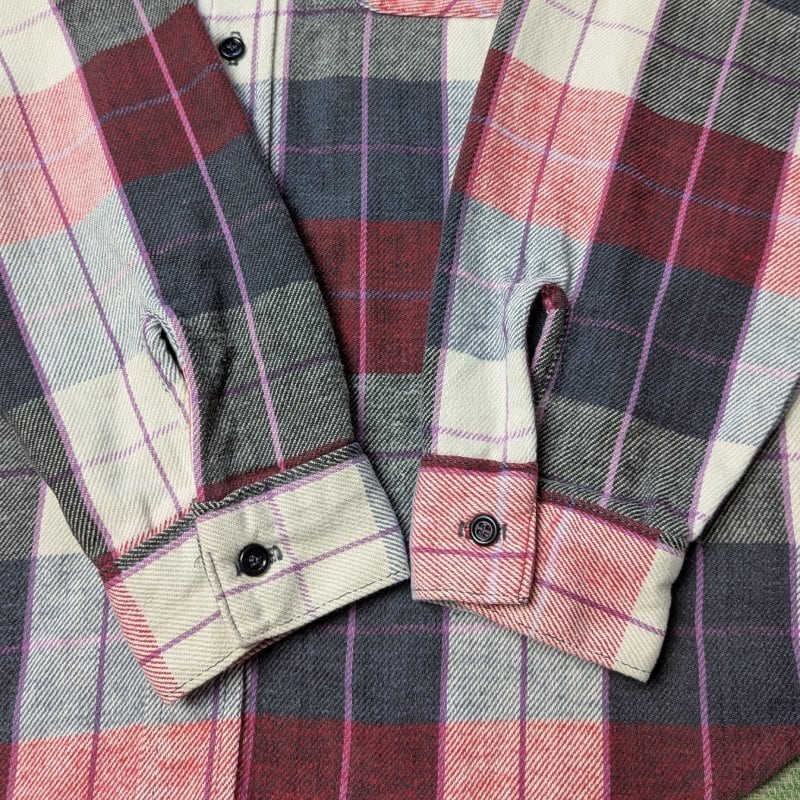 グレー×レッド×ホワイトのやや大判のチェックに、ピンクっぽいパープルのラインが入るのが良ポイントと思います。