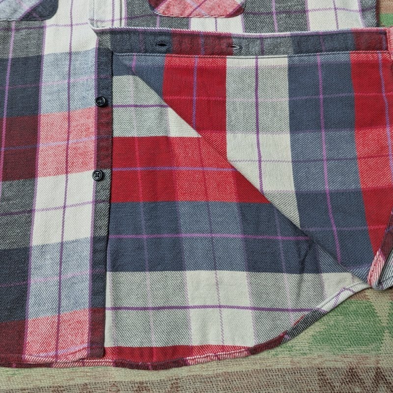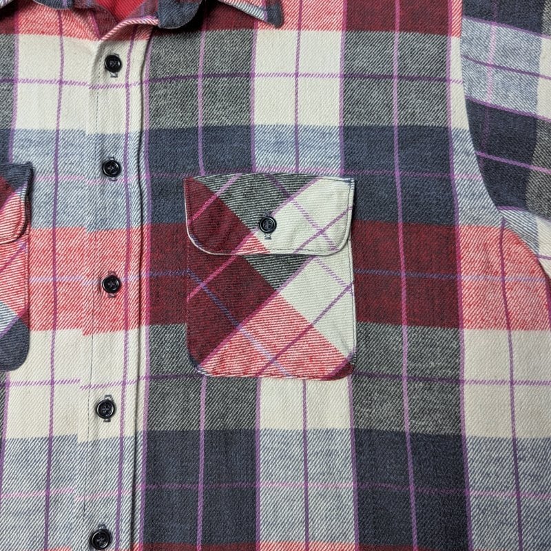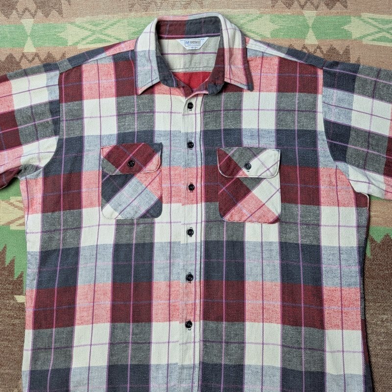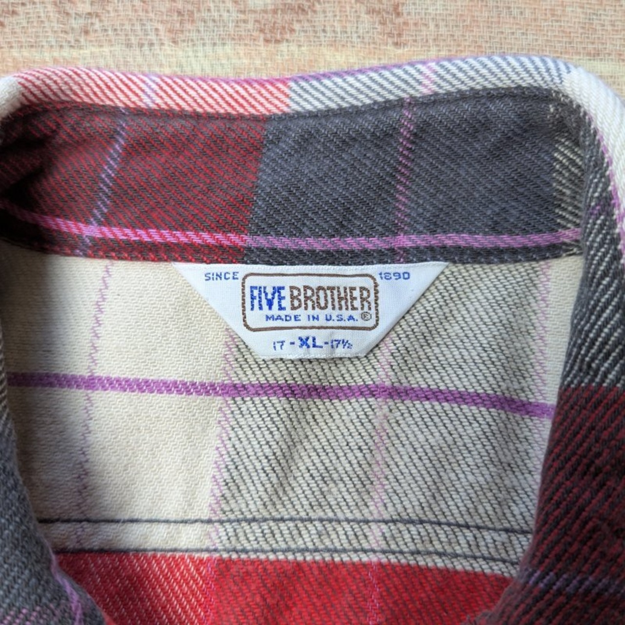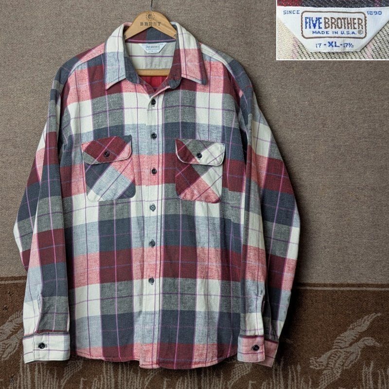 80s~ FIVE BROTHER Flannel Shirt (XL) GRAY/RED/WHITE