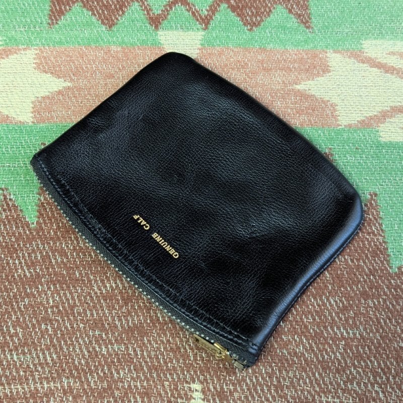 1940s GENUINE CALF Black Leather Purse DEAD-STOCK w/TALON Zipper