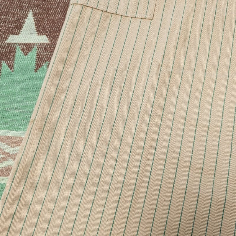 ベージュのヘリンボーンツイルに緑ストライプ(100%コットン)、コカコーラのサービスマン用ユニフォームです。