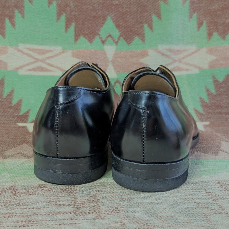 合わせやすい万能なプレーントウ シューズ。入手が難しくなってきた革底でサイズの良い一足です。