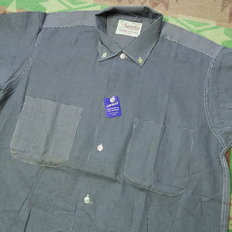 60年代の≪Spindle City by PALMER CRAFTSMEN≫ボタンダウン半袖コットンシャツ。ボタンを外して開けばオープンカラーになります。バックヨークにボックスプリーツ、袖口にスリットと飾りボタン。