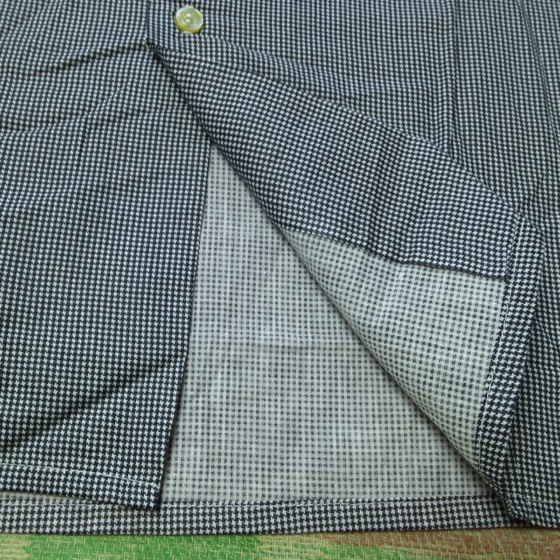 細かな千鳥格子プリントの100%コットン生地。生地ロットの差と思いますが、右ポケットや背中など、若干異なる色味に見えます。さりげなく満足感が得られるおもしろいポイントと思います。