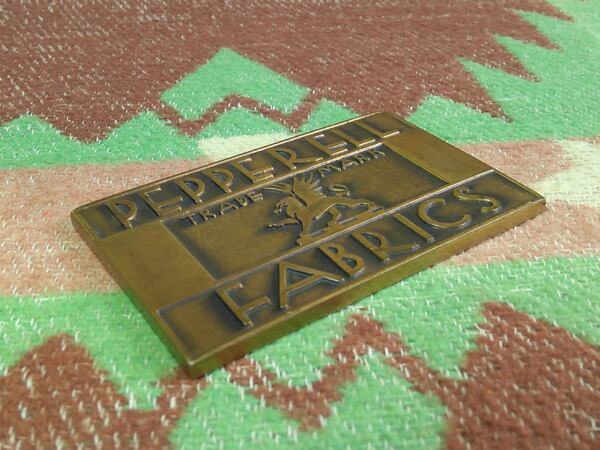 デニム・シャンブレーなどおもしろい生地が多く、ヴィンテージ ワーク物好きにはご存知の方も多い“ PEPPERELL FABRICS ”のアドバタイジング。ペーパーウエイトと思われる、どっしり重量感があるブロンズのプレートです。