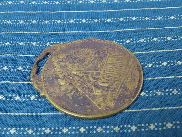 1900~1910年代のストローズ デトロイト オーバーオールズ・ウォッチフォブ。機関車の絵柄、こういったフォブとしては厚みがありずっしりと重量感があります。詳しく調べていませんが、デトロイトのいう土地柄や広告の雰囲気から、ヘッドライトやフィンクスと買収など何かしら関連があるメーカーのように推測します。