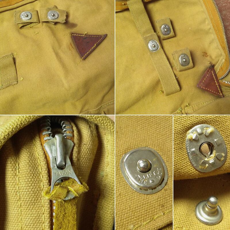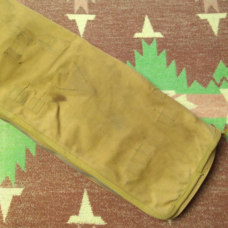 第二次大戦期のUSミリタリー≪AIRPLANE MOORING CASE≫タイプD-1。その名のとおり飛行機係留用の道具を収納するケースになります。頑丈なダック キャンバス生地、TALONジッパー、内側は細かな収納があり≪LIFT THE DOT≫金具が多用されています。