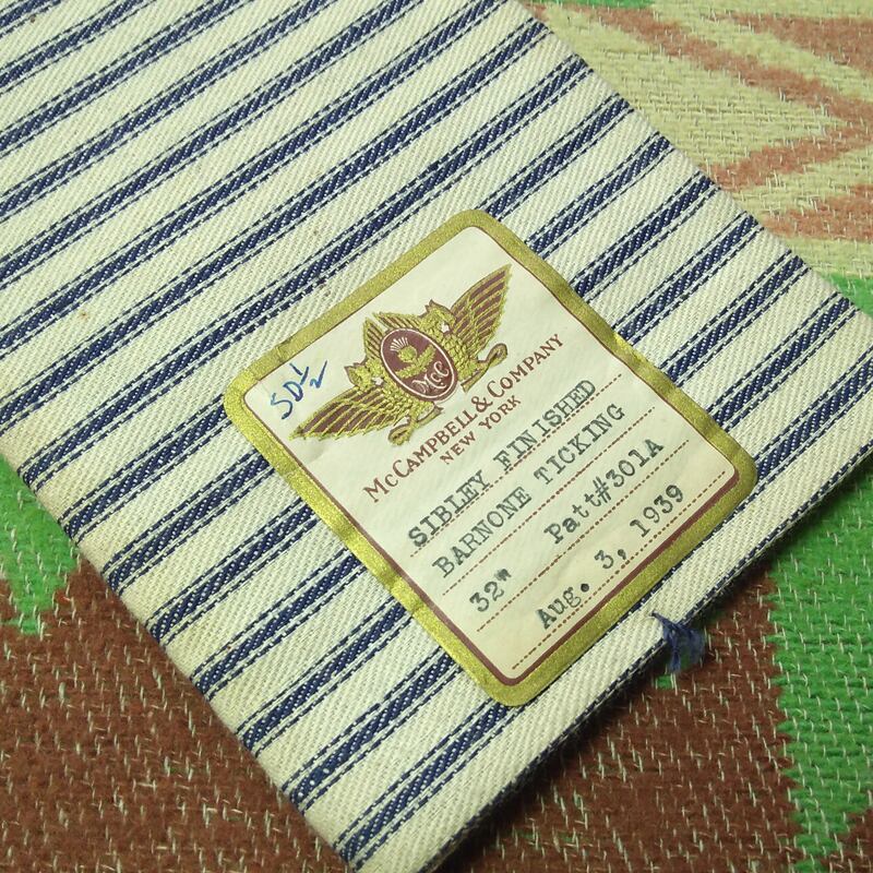 生成りにストライプ(おそらくインディゴ)、コットンツイル(デニム)生地。