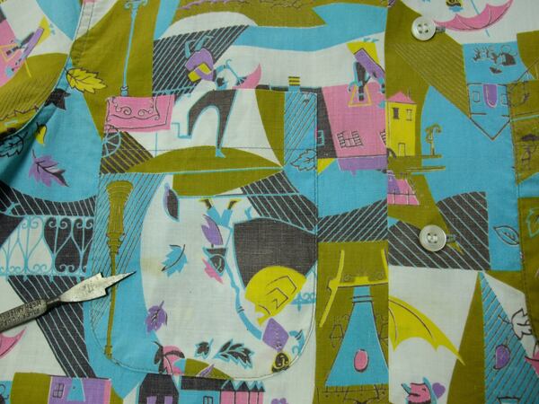 50年代のサンタ クルーザー・半袖シャツ。袋襟、トップボタンはループ留め。