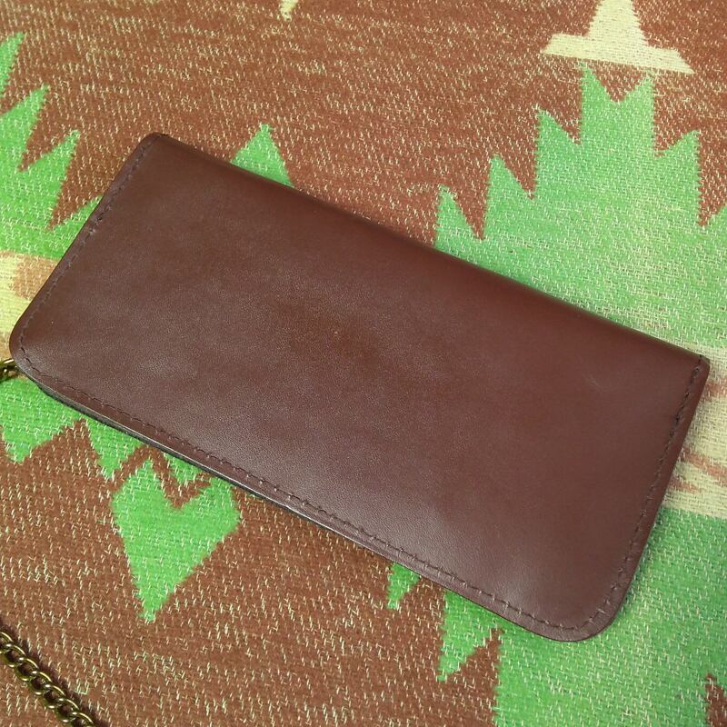 60年代~の≪ナイト レザー≫トラッカーウォレット。ブラウンのカウハイド。3本ラインのメタルジッパー。しっかりとした重量感があるブラス・ゴールドトーンのスチール製チェーン付き。