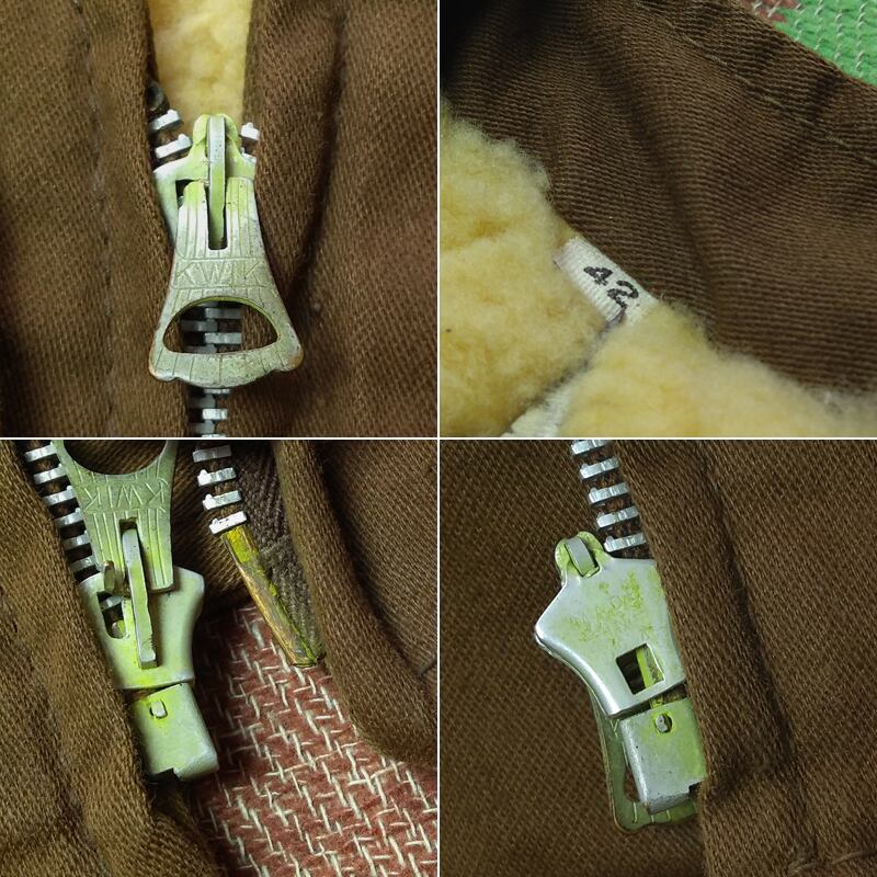 背面左アームホールにわずかな擦れダメージとステッチ抜けがあるくらいで、ダメージは特になく生地はしっかりした状態です。ムートンも若干の黒ずみは見られますがダメージは特にありません。ジッパーは青錆びが見られますが、問題なく開閉可能です。