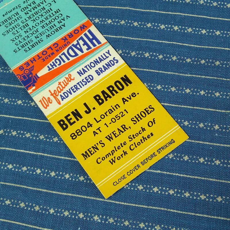 1940s~ HEADLIGHT WORK CLOTHES Match Book