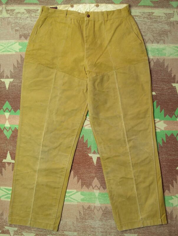 50年代~の≪レッドヘッド≫ハンティングパンツ。TALONピンロックジッパー、サスペンダーボタン付き。正面太ももから裾とおしりは生地が二重になっていて、この部分は裏面ゴム引きの生地を使用しています。