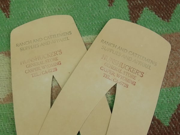50年代~のLee RIDERSのアドバタイジング。しおりのようなものでしょうか、紙製のジーンズ型、やや大きめサイズです。裏面に販売店のスタンプが押してあります。