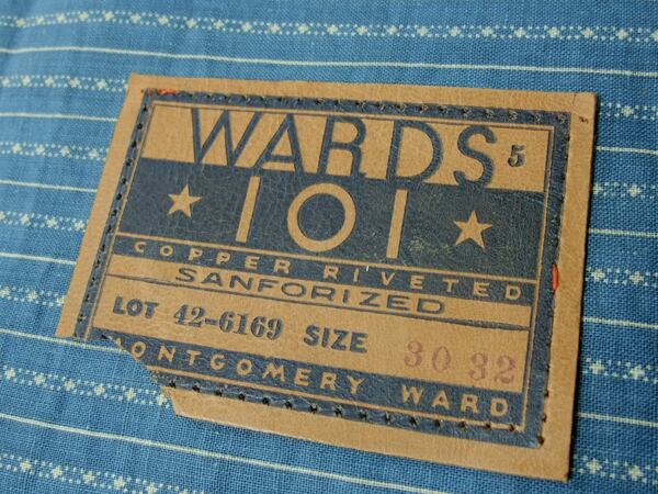 30~40年代のモンゴメリーワード 101のレザーパッチ。時代的にはバックルバックやアーキュエイトステッチのモデルの頃です。デッドストックやノンウォッシュなど数十万円レベルのスペシャルな個体でしかレザーパッチをしっかり確認できる機会はないと思います。