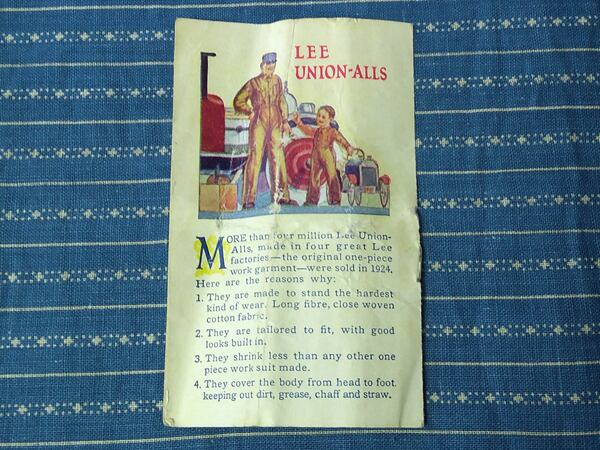 20年代のLeeアドバタイジング。配布されていたものか製品に付属していたフラッシャー類と思います。ホチキスが残っていますので、中にもう数枚ページがあったのかもしれません。