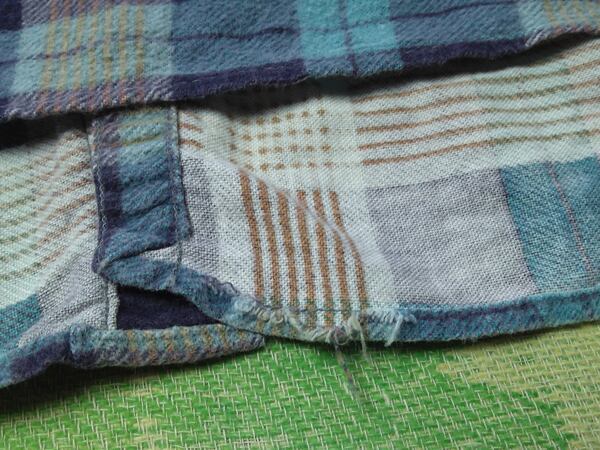 左肩に接着芯を貼ったリペアがありました。着用してしまえば意外と気にならないように思いますし、ヨーク裏などの生地を利用して目立たないようリペアし直しても良いかと思います。あとは裾裏にステッチから外れたほつれが若干ある程度で良好なコンディションです。