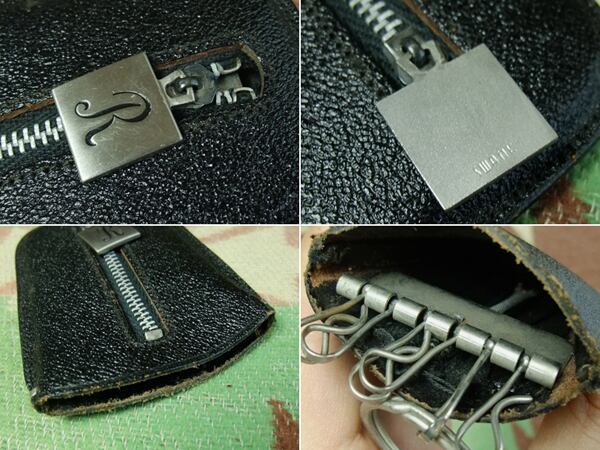40年代~のスワンク・レザーキーケース。イニシャルRのプルがついたコの字ジッパー。スライダーと内部のキーユニットが接合されていて連動して動く仕組みです。