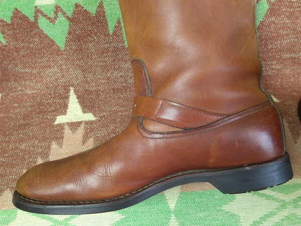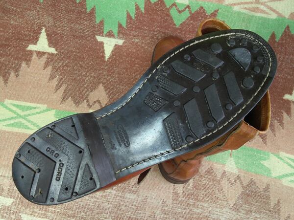 70年代~のエンジニアブーツタイプ・プルオンブーツ。タグ等ありませんが、GOKEY製もしくは同じファクトリーメイドの製品に間違いないでしょう。シルバートーンのスチールローラーバックル。アウトソールはGRO-CORDラバー。