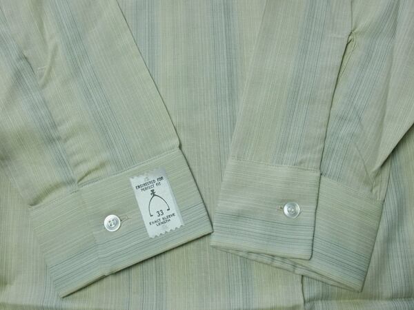 60年代のマクレガー・コットンシャツ。ぼかした感じのストライプ、薄手の100%コットン生地。襟はミシンステッチ・プラ芯入り、トップボタンはループ留め。
