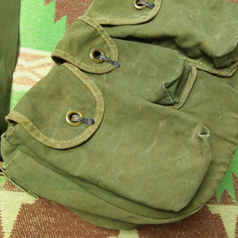 全体的なシミ汚れや色あせが見られますが、洗濯済みですので概ねクリーンな状態です。内側の頑固な汚れに関しては生地の色落ちを度外視して強めに擦り抵抗感が少ない程度に落とせていると思います。ハンティング・ミリタリー・ワークなどアジのあるヴィンテージ古着にご理解のある方でしたら、まだまだお使いいただけるコンディションと思います。