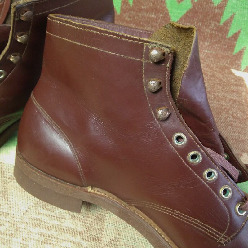 40年代~のソログッド(ウェインブレナー)・ワークブーツ。ブラウンレザー、ホースハイドのようなもっちりと柔軟性がある良い革質です。アウトソールはUS Royalコルク+REGENTラバーヒール。