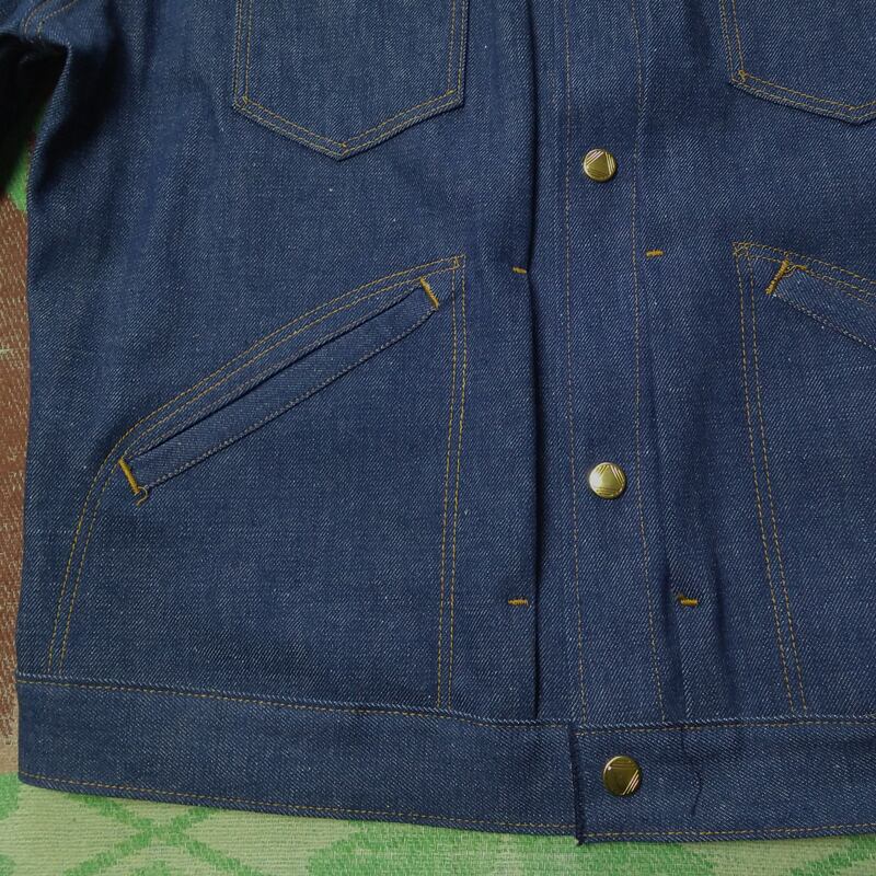 60年代の≪ローバックス(シアーズ)≫デニムジャケット。ラングラータイプの4ポケットデザイン、背中は個性を出した切替になっています。スナップボタン留め、身返しはイエローラインのセルビッジ。