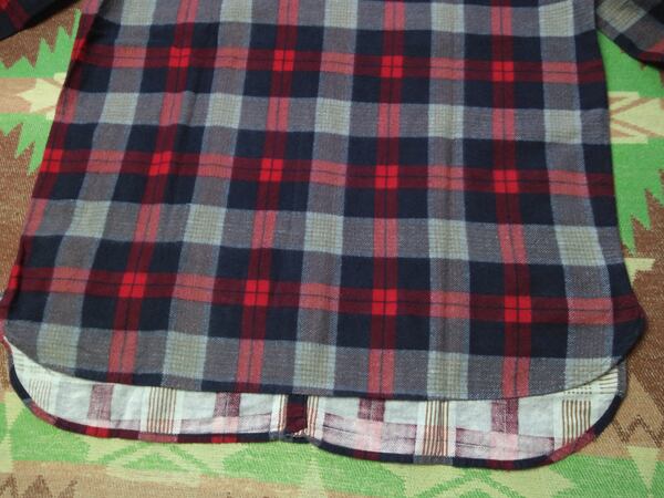 60年代の≪Allied CLOTHIERS≫フランネルシャツ。赤黒系チェックの100%コットン プリントライトフランネル。ロングテイルのワークシャツタイプ、裾は前が長くOLD感あります。裾サイドはマチ付き。