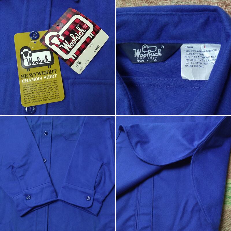 80年代のウールリッチ・シャモアシャツ。きれいなブルーのヘビーウェイト100%コットン両面起毛フランネル、滑らかで心地よい風合いが最高です。MADE IN USA