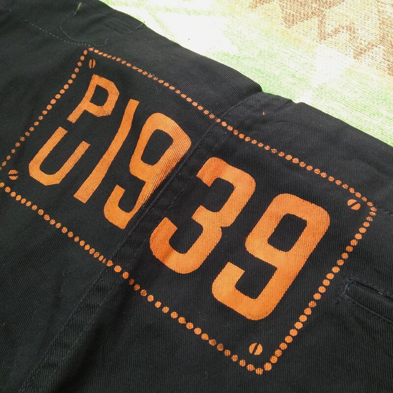 ライセンスプレートを模したプリントが良いですし、この時代のショーツで黒。