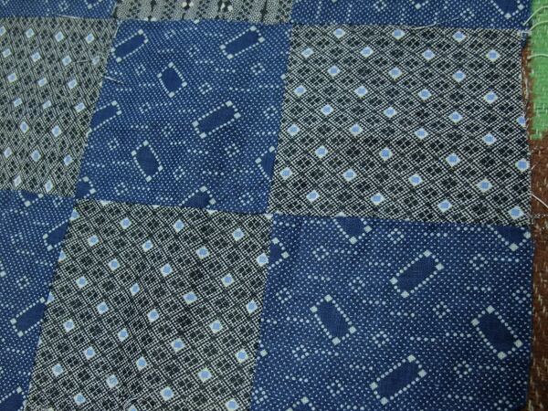 大判のパッチワークからカットされたものですので、端は切りっ放しの状態です。若干のシミ汚れ・シワなど見られますが、特に問題のないコンディションです。