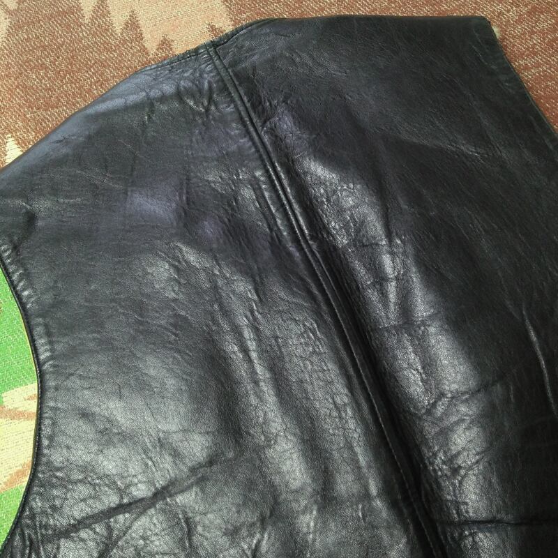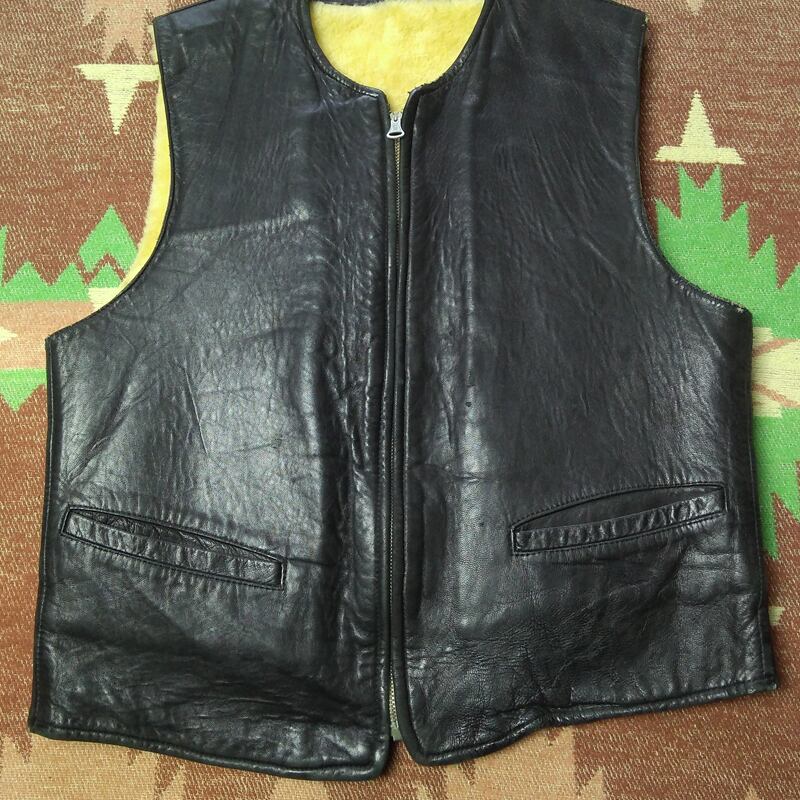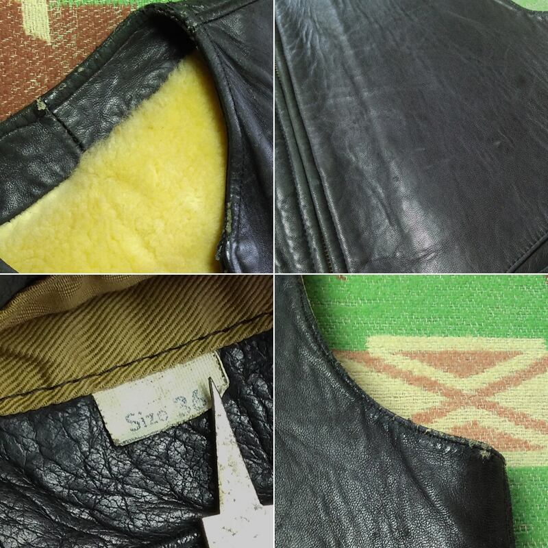 きめ細かくソフトな風合いのシープスキン。左右で丈が少し異なって見えますがご愛嬌といったところかと思います。この年代のこういったベストで黒は意外と少ないですし、コンディションも良好といえる一品です。