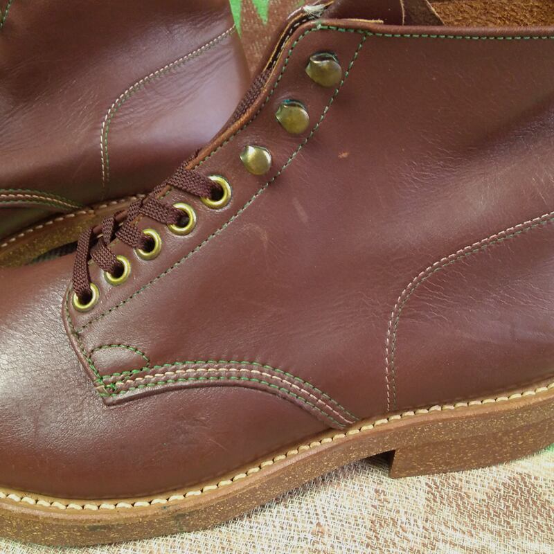 50年代~のペニーズ・ワークブーツ。プレーントウ(スチールなし)、良いアジが出ていきそうなブラウンレザー。アウトソールはVul-Corkコルクソール。
