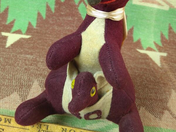 60年代のカレッジエイト パーソナリティ ペット・マスコットドール。カンガルーモチーフ、ずっしり中が詰まった感じのフェルト製。外れていますが≪LI’L LENA≫の紙タグが残っています。
